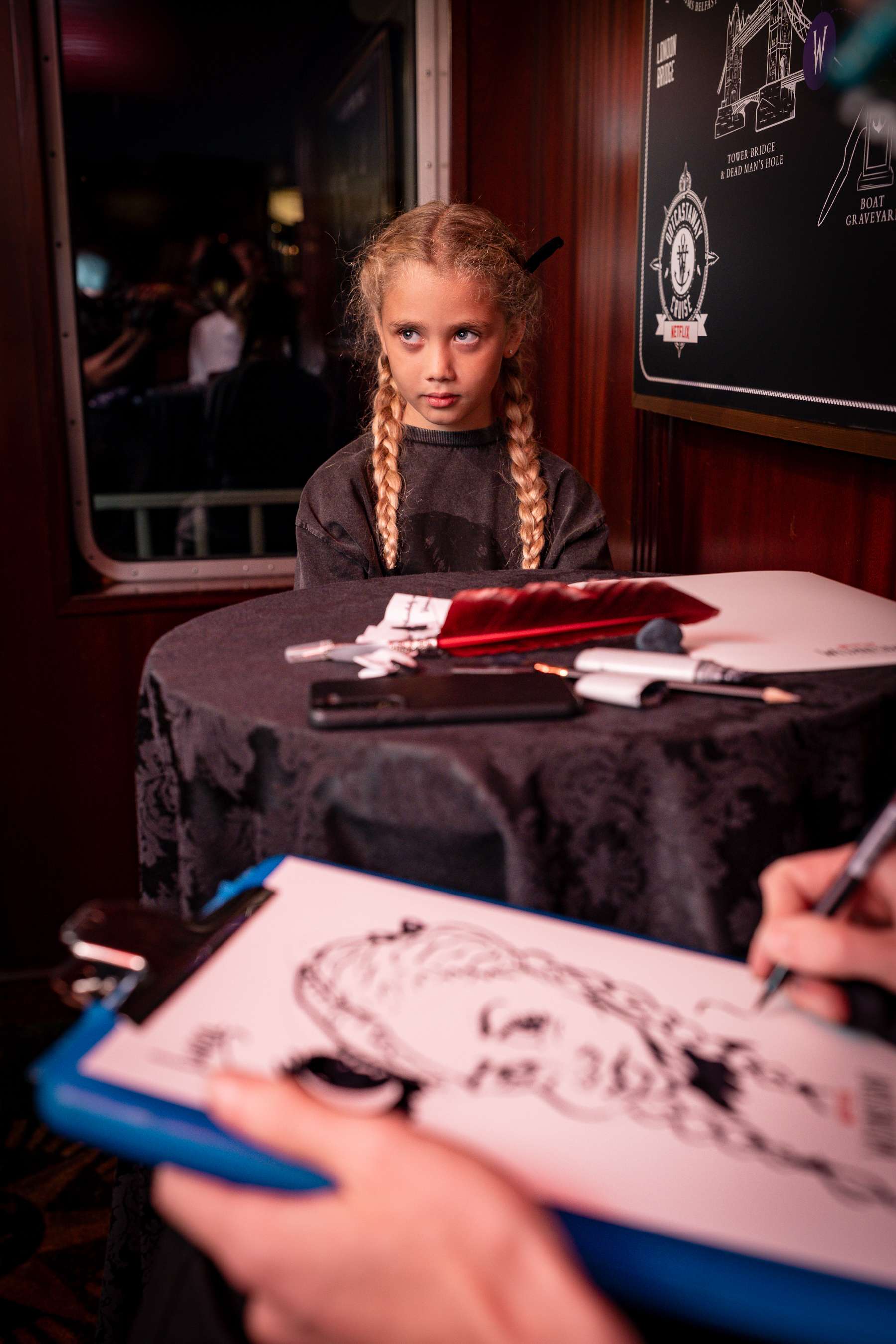 Every detail to rejected the traditional “fun in the sun” brief and instead created an deadpan, immersive experience. Arrival began with sailors scowling guests into queues. Onboard, the Deck of Decay hosted tango cabaret, escapology, and ghostly piano sets, while the Crypt Creamery served flavours like Chill of the Damned and Sundae Mourning. A roaming tour guide heckled tourists with gothic monologues about London’s dark past, while artists sketched caricatures of exaggerated gloom. All sourced, directed and managed by our in-house talent agency.