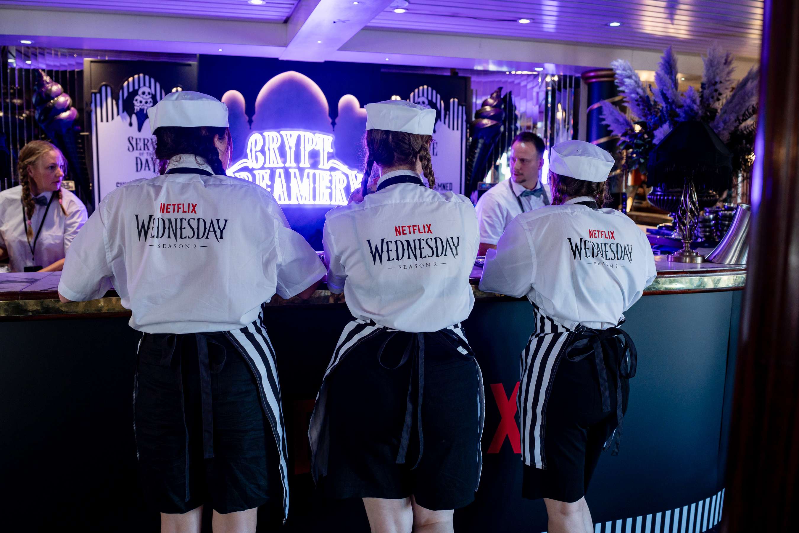 Our London event team and in-house creative fabrication agency turned The Dixie Queen into the Outcastaway Cruise, a twisted gothic journey where nothing was built for comfort. From ice cream laced with doom at the Crypt Creamery, to Thing greeting guests at the gangway. Guests were met with sinister sailors, shackled décor, eerie entertainment, and activities like “Wear Your Woe” tattoos and “Tides and Talons” manicures.