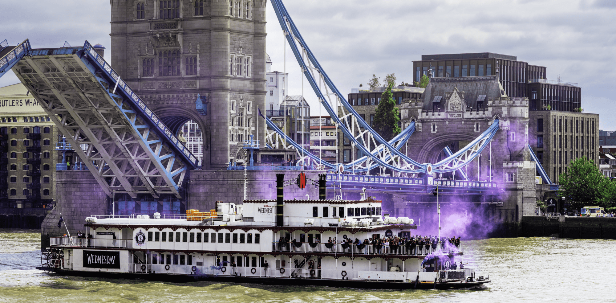 Guests were then summoned to the no-fun no-sun deck for the ultimate hero moment, using their “telekinetic powers” to raise Tower Bridge, before the Outcastaway cruise passed beneath. The most daring could even “Press for Pain”. Every element aligned with the brief: immersive, playful, dark, and brimming with content-ready moments.
